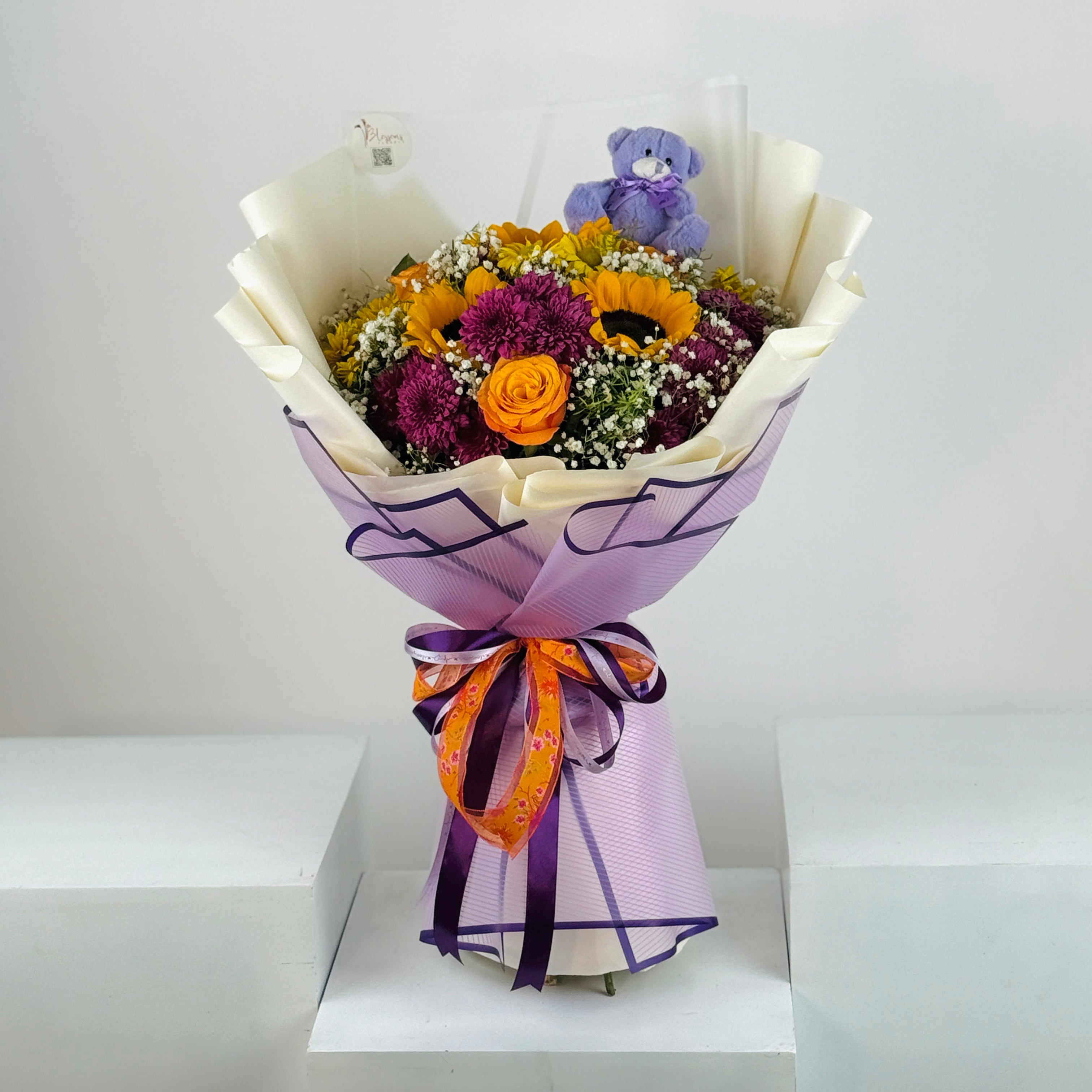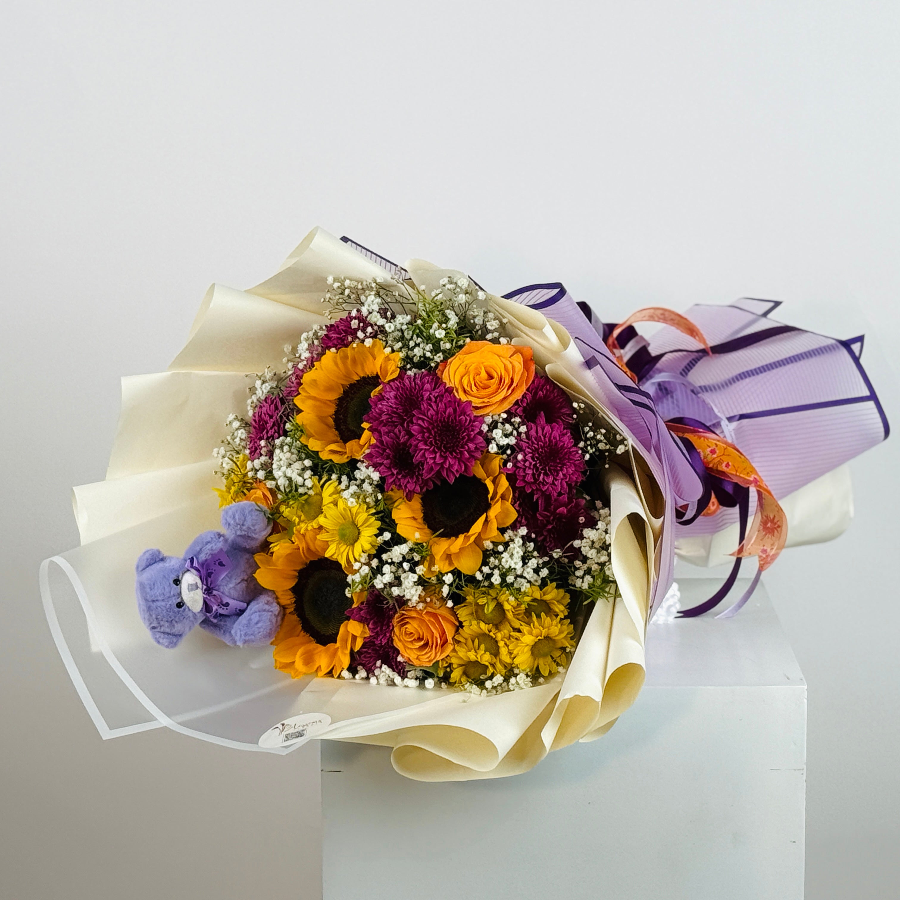Vibrant and lively, Beach Bush Bouquet combines roses, chrysanthemums, sunflowers, and baby breath for a joyful bouquet. Perfect for birthdays, love gestures, or anniversaries.