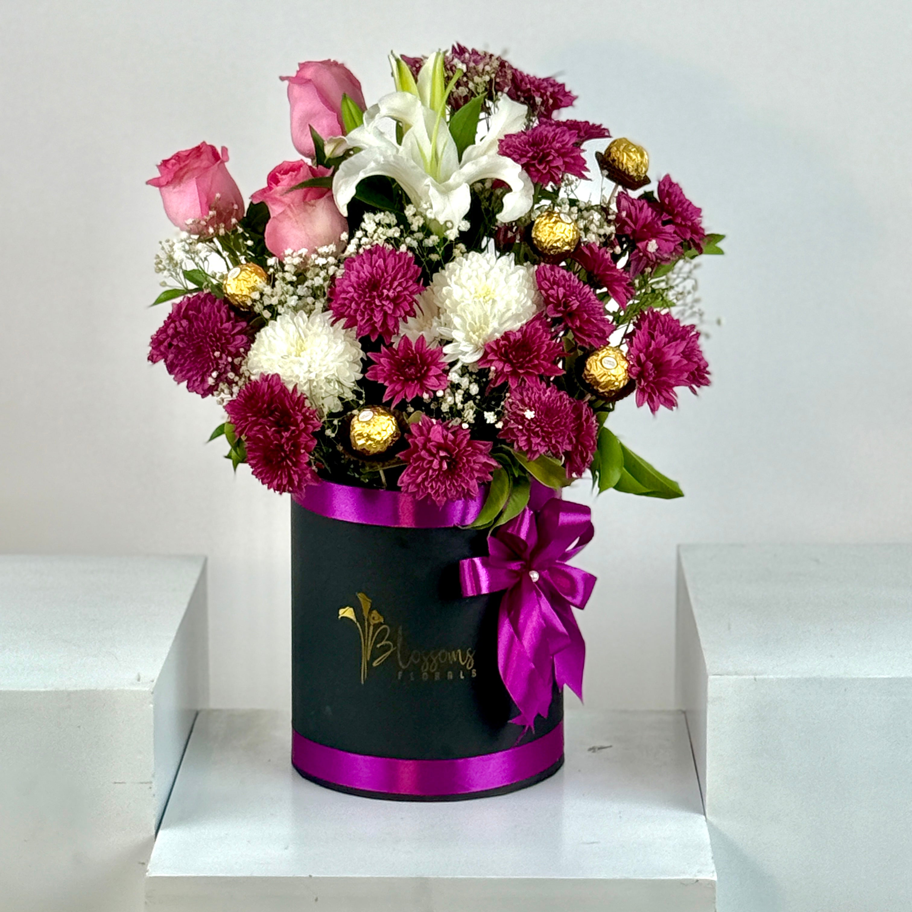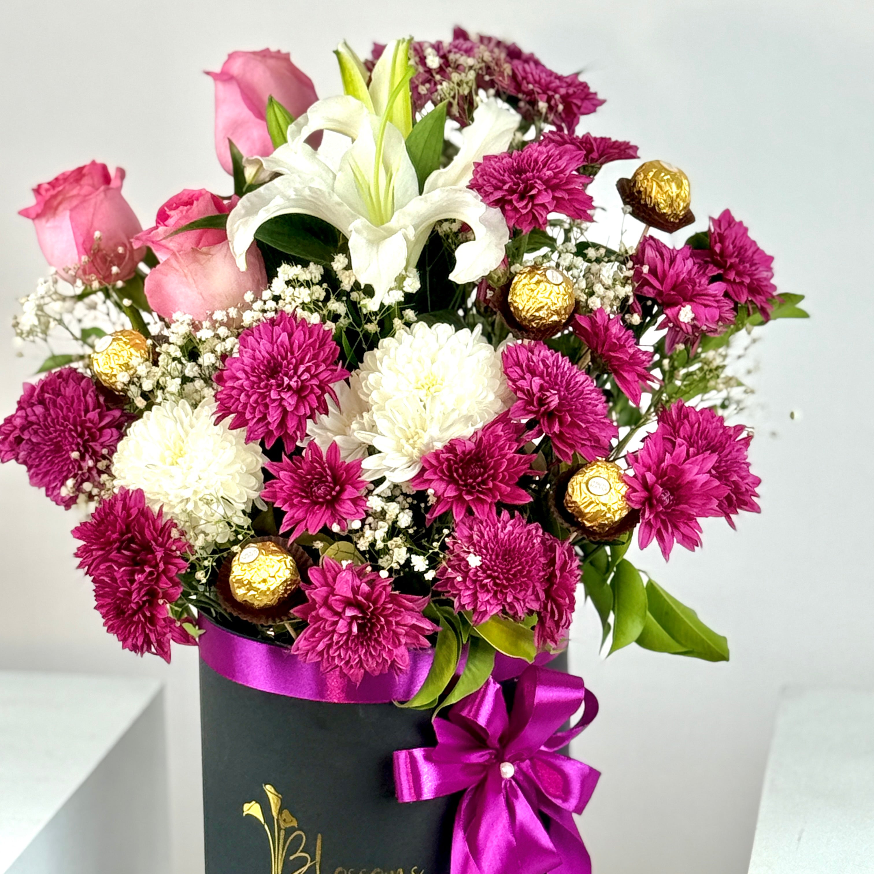 Classic and charming, Bunch n Box combines roses, lilies, chrysanthemums, and baby breath in a refined floral arrangement. Perfect for birthdays, love gestures, or anniversaries.