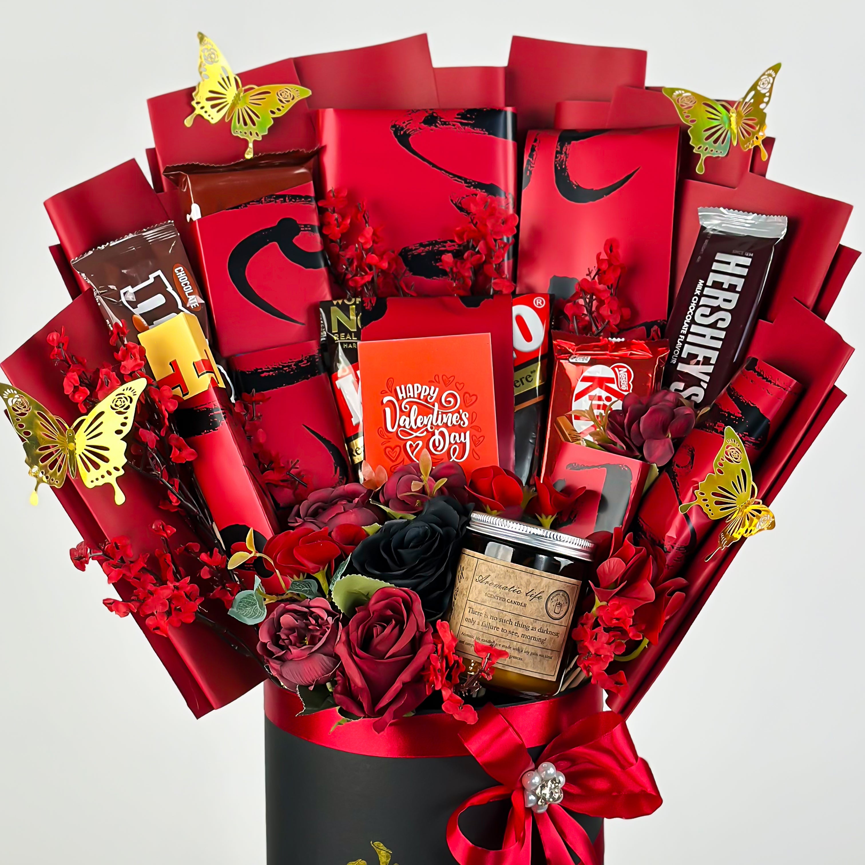 Step into a world of romance with Chocolate Garden, where floral beauty meets sweet indulgence. Designed for Valentine gifting, this arrangement feels playful yet elegant.