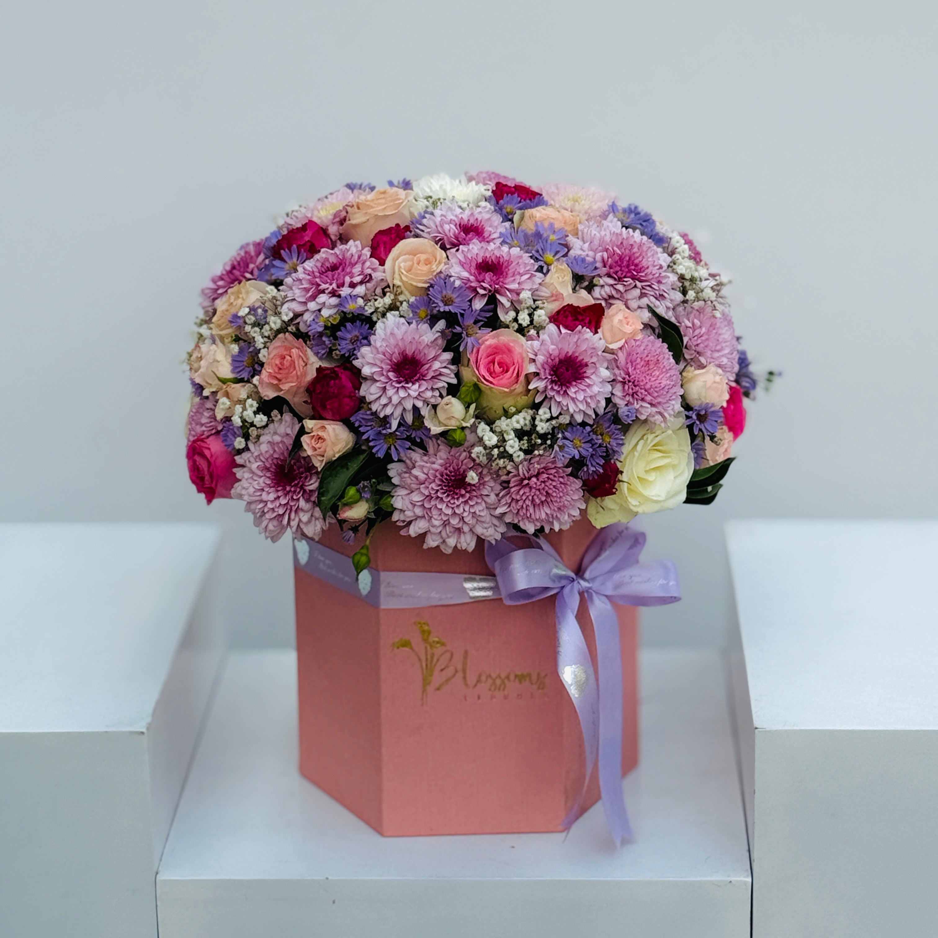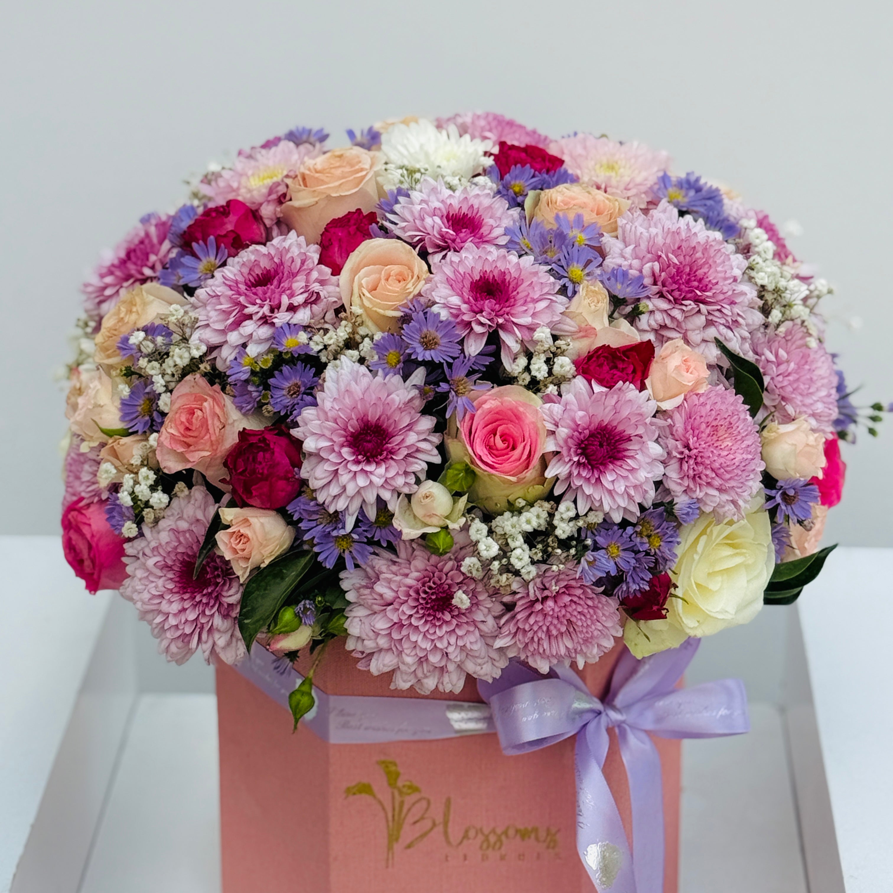 Celebrate elegance with Colours and Life, a floral box blending roses, chrysanthemums, and baby breath. Ideal for birthdays, anniversaries, or love gestures, it’s a gift full of care and charm.