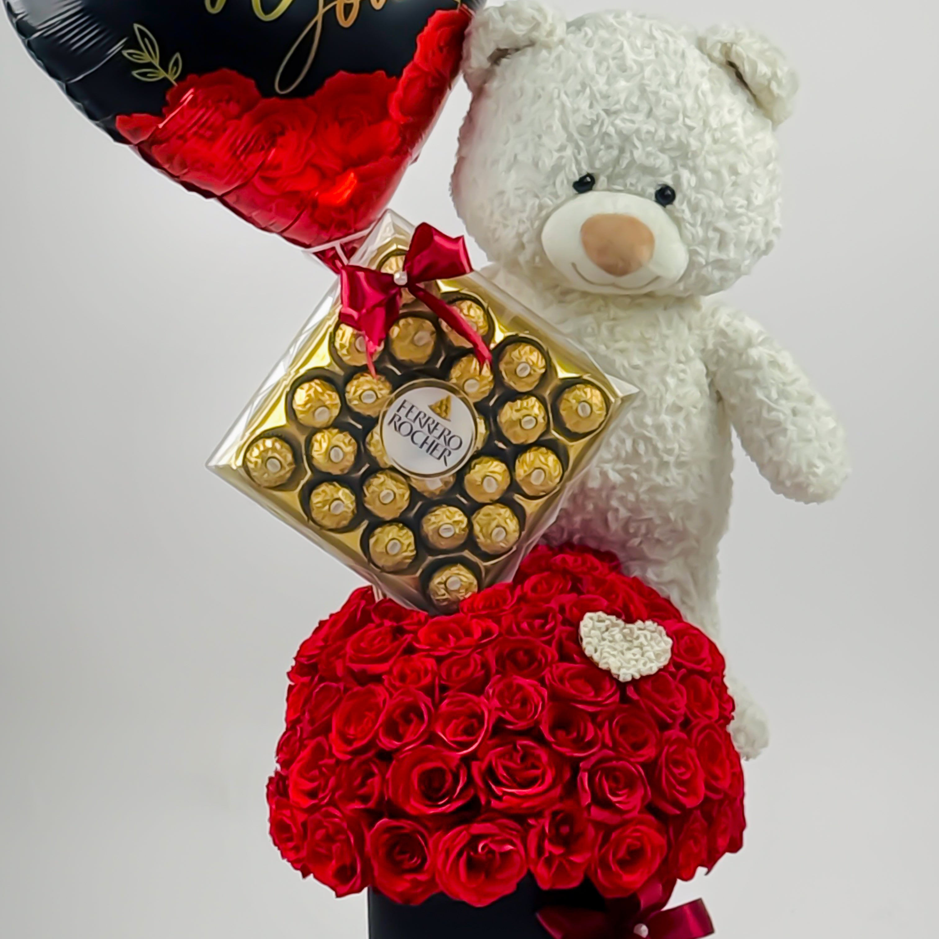 Featuring handpicked roses, gentle floral accents, decorative greenery, indulgent chocolates, and a charming teddy element, this arrangement creates a playful and heartfelt vibe. Every detail reflects care and thoughtfulness.