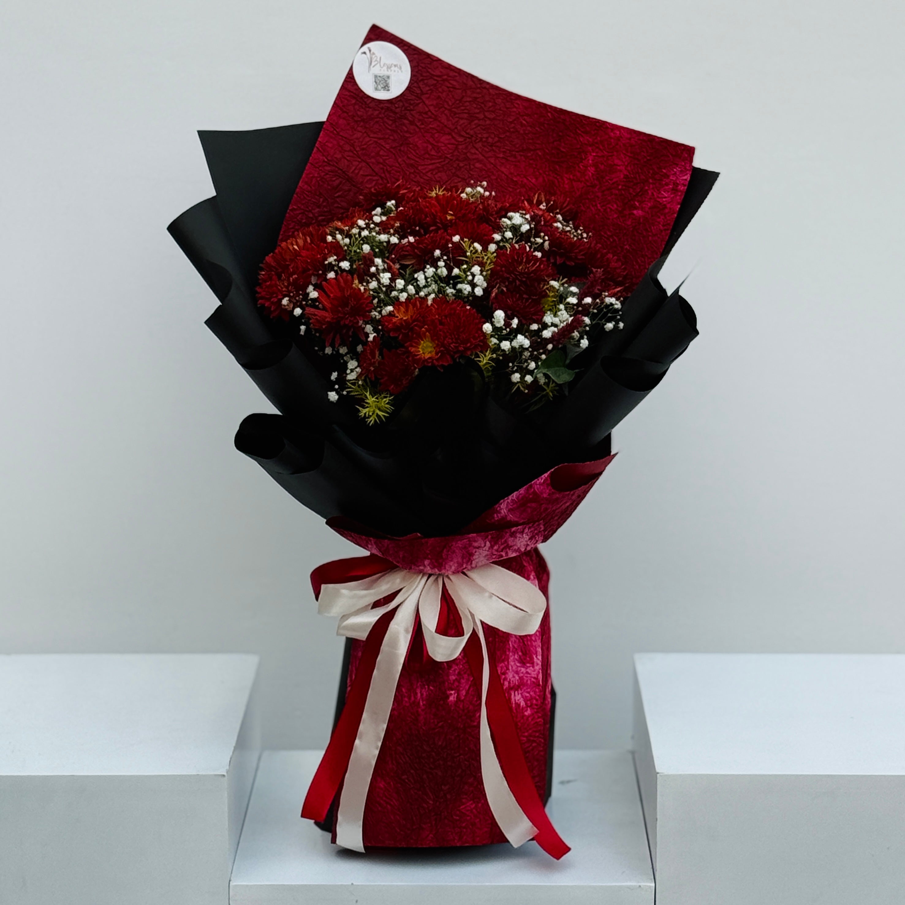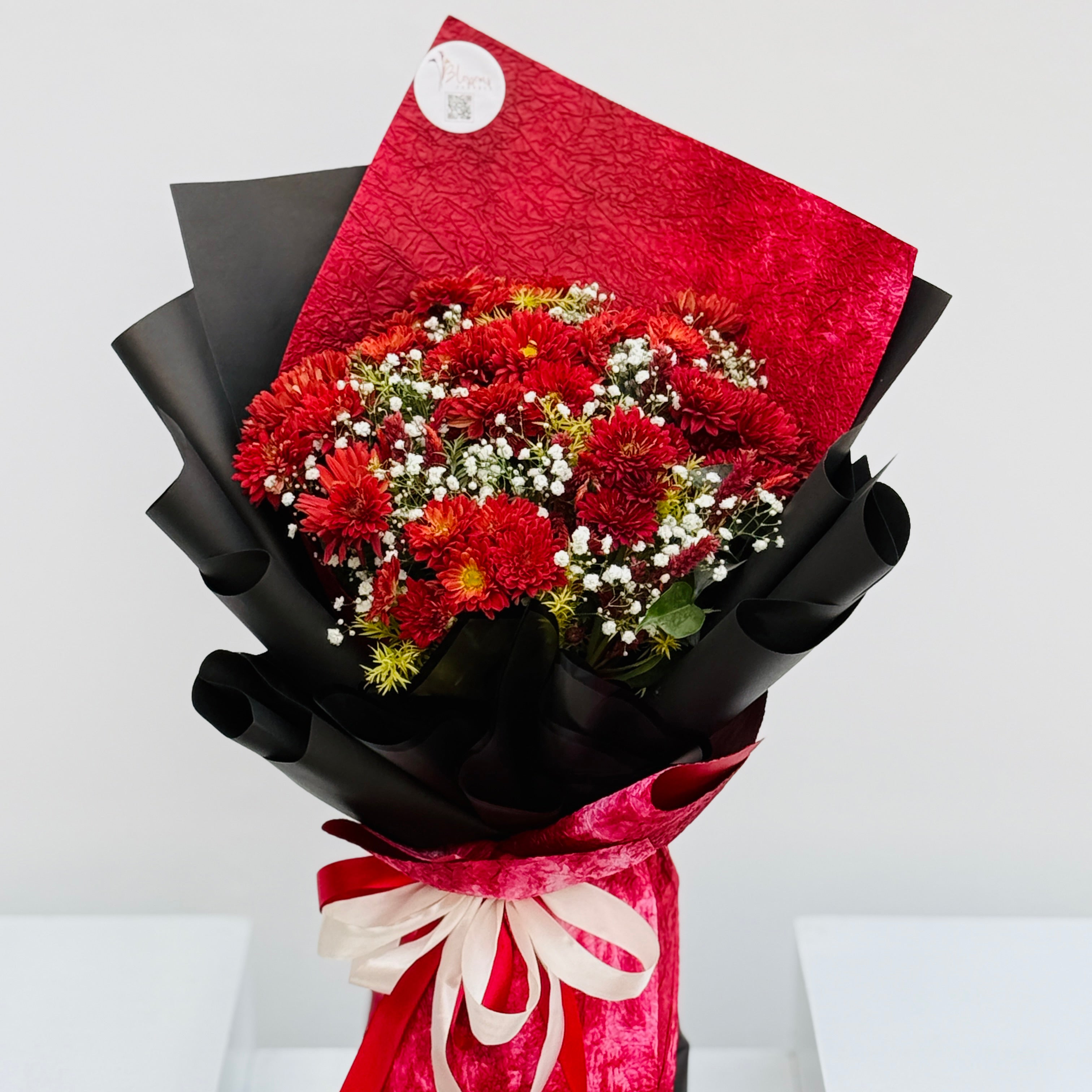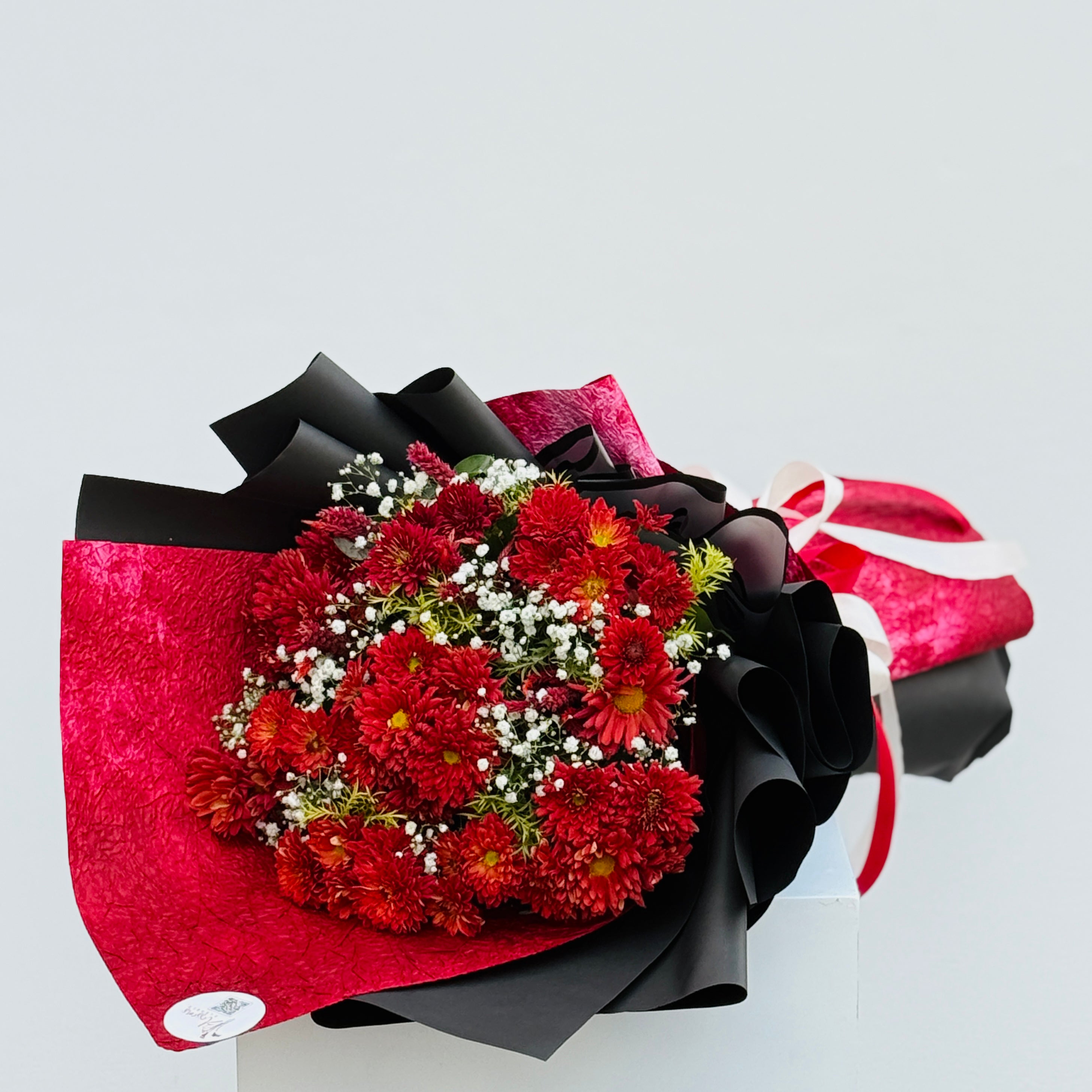 Rich and elegant, Depth Entangled blends chrysanthemums and baby breath to create a bouquet full of sophistication. Perfect for birthdays, love gestures, or anniversaries.