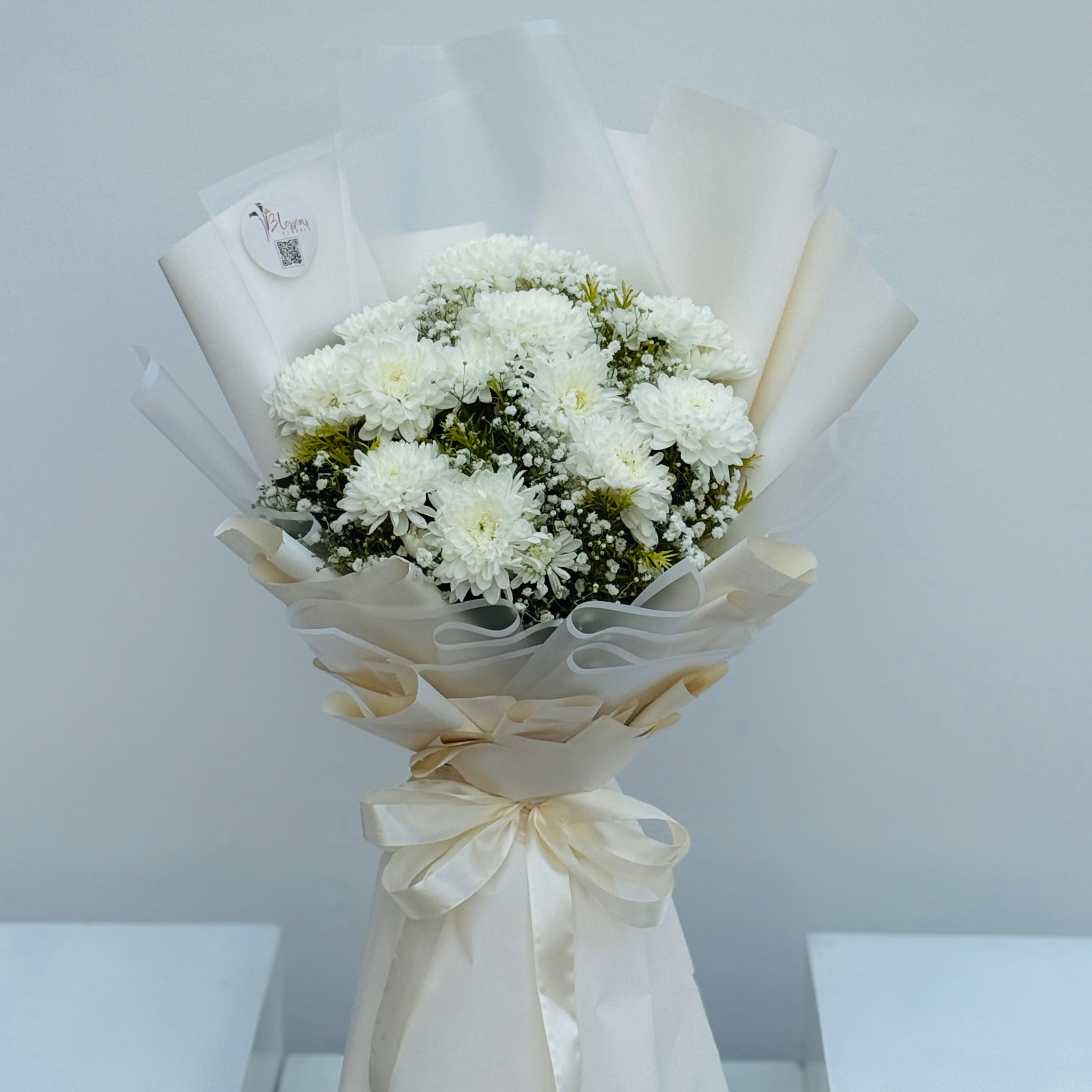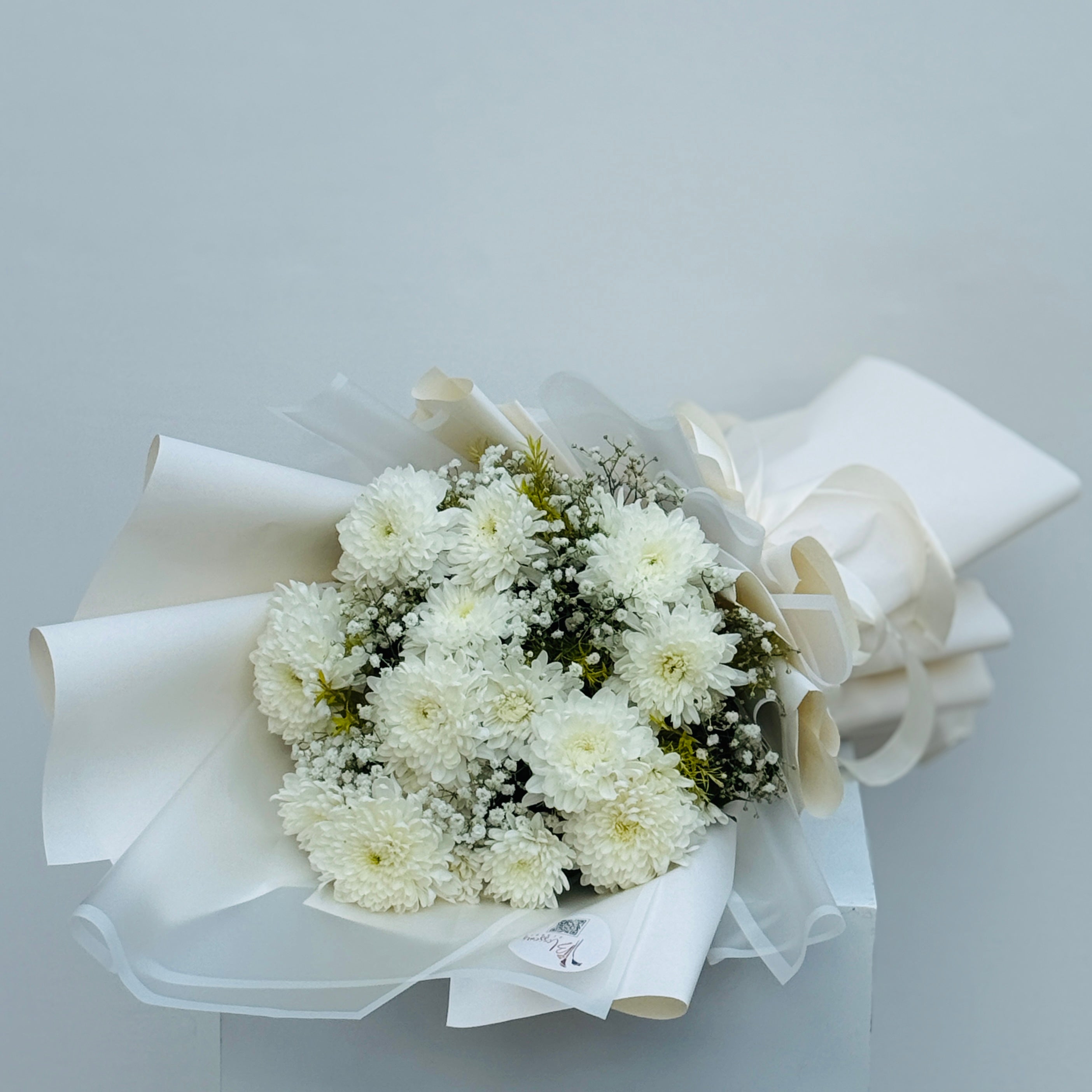 Elegant and thoughtful, Purity Field features chrysanthemums paired with delicate baby breath. Perfect for birthdays, love gestures, or anniversaries, this bouquet radiates charm and sophistication.