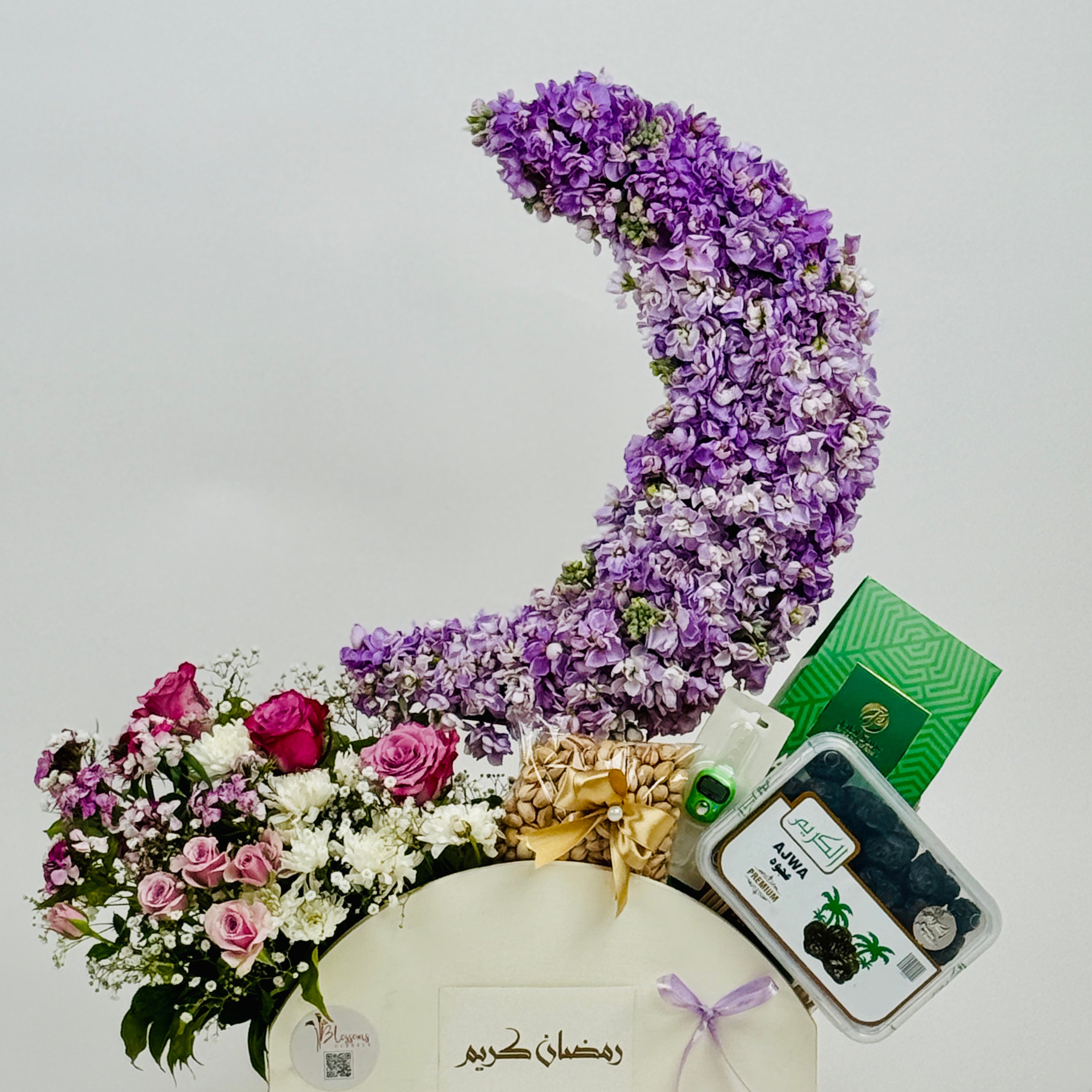 Bring serenity and elegance into the holy month with our Ramadan Moon Box, a refined floral arrangement inspired by the peaceful glow of Ramadan nights.