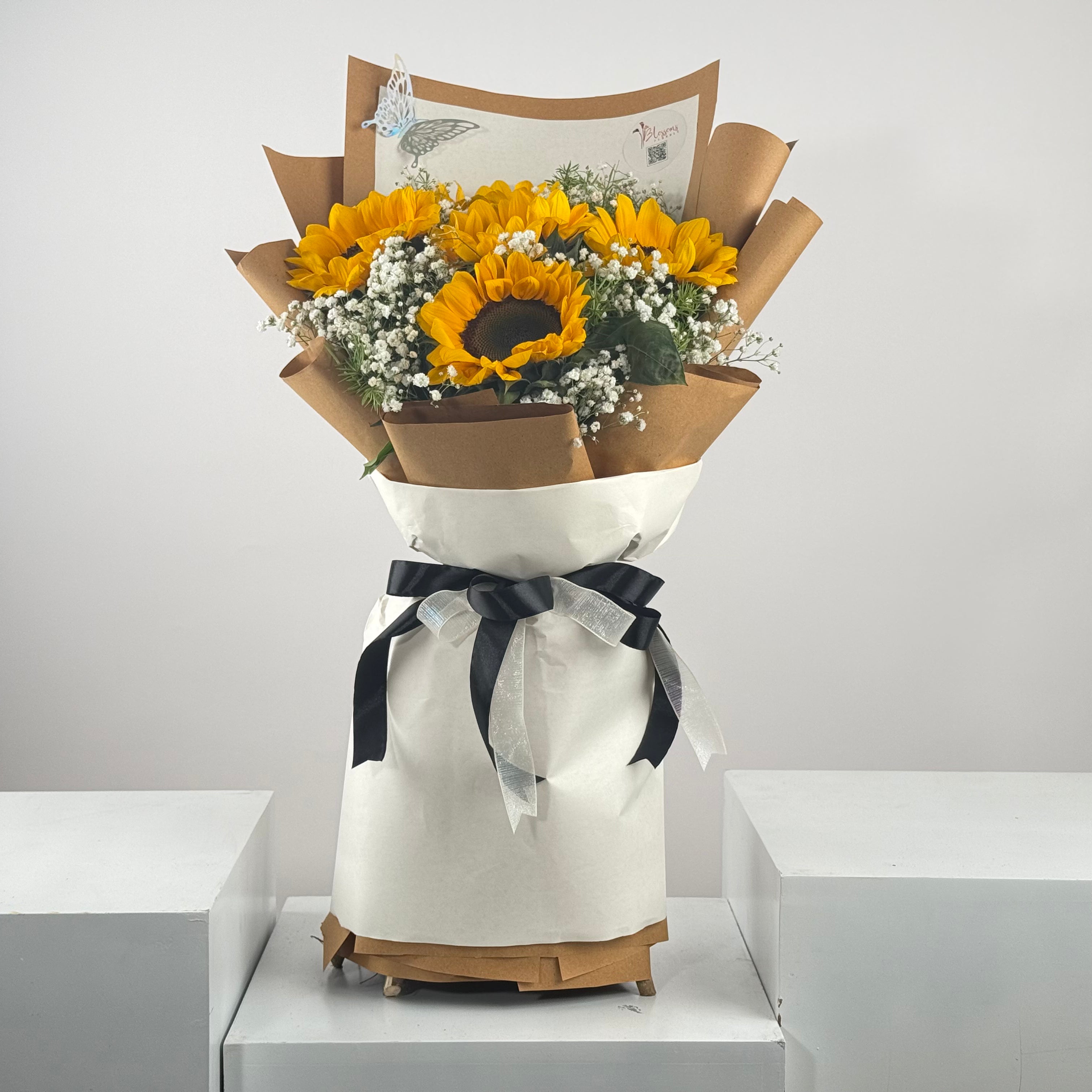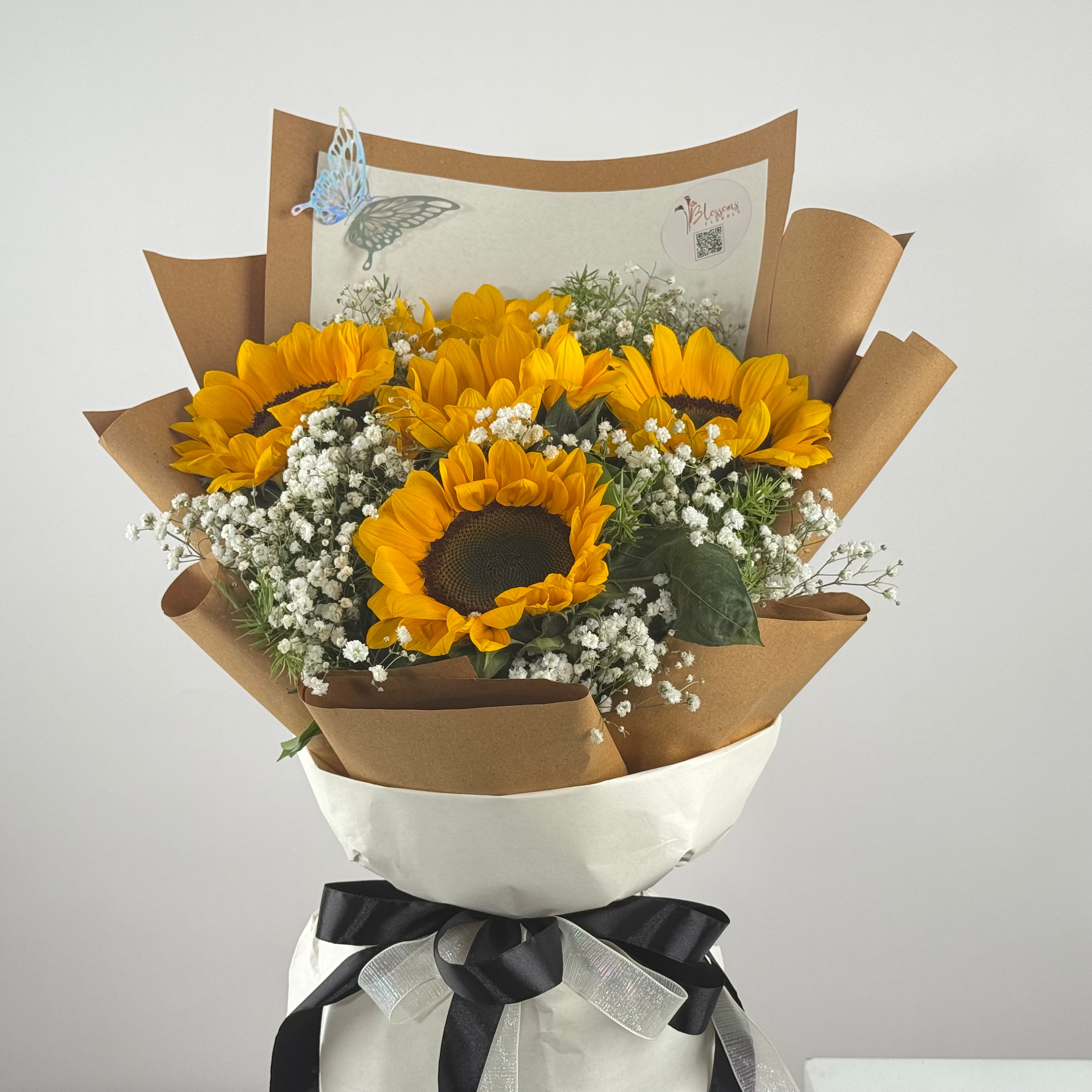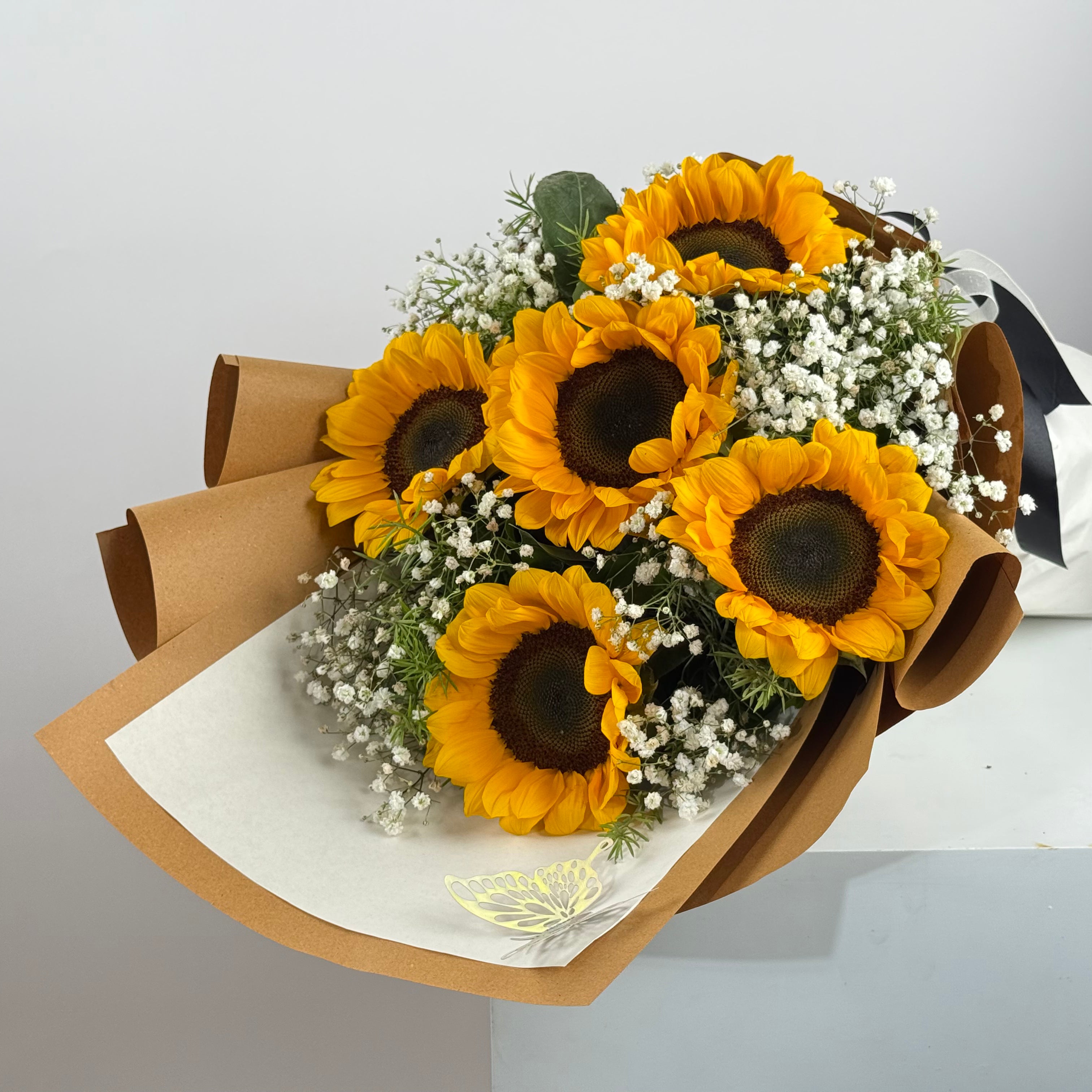Bright and uplifting, Snowery Coven pairs sunflowers with delicate baby breath for a cheerful bouquet. Ideal for birthdays, congratulations, or “get well soon” gestures, this arrangement radiates positivity.