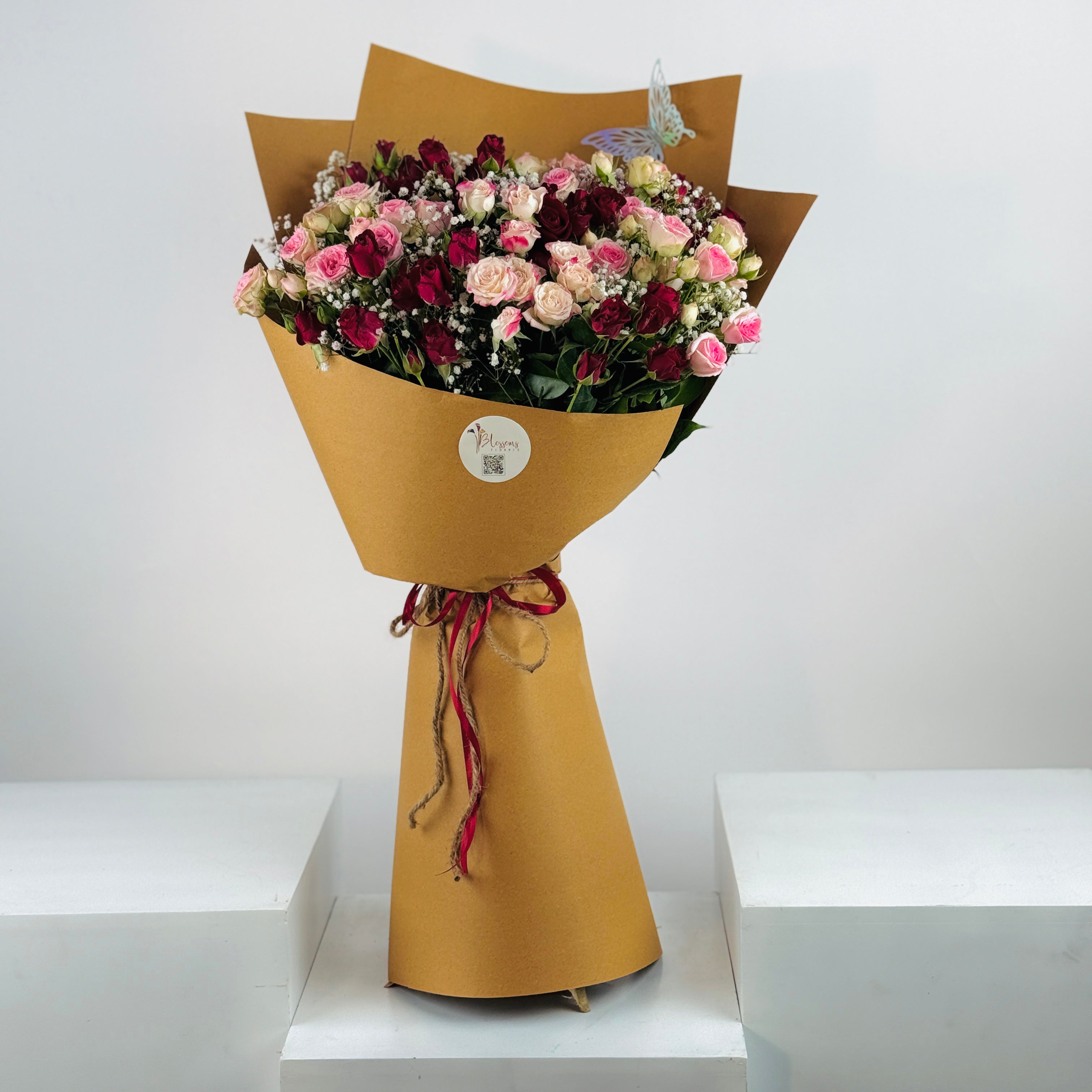 Soft, elegant, and romantic, Snowery Earth combines roses and baby breath for a charming bouquet. Perfect for birthdays, anniversaries, or love gestures.