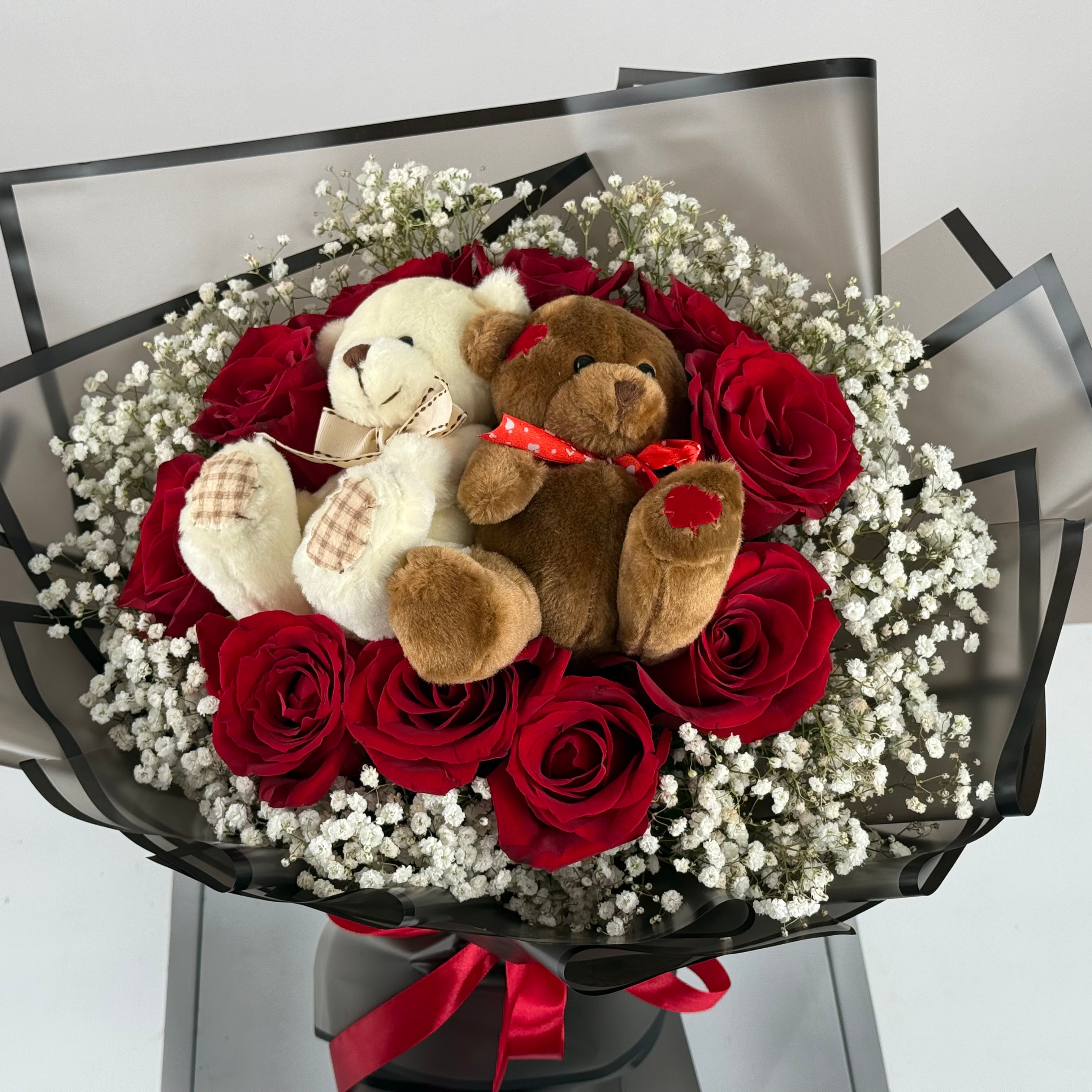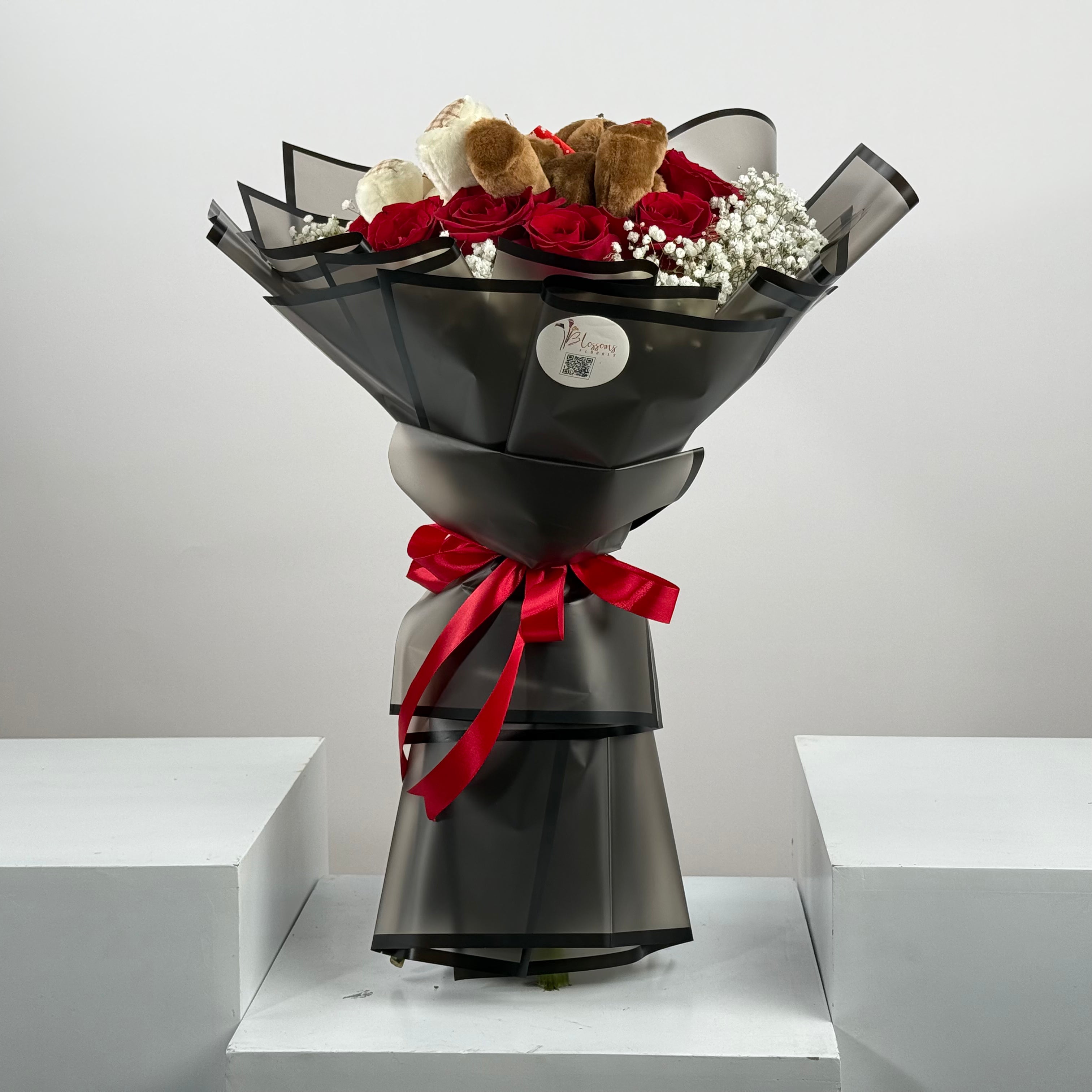 Sweet, cozy, and full of love, Stuffed Happiness is designed to bring smiles and heartfelt joy. A perfect Valentine gift, it combines floral beauty with comforting sweetness.